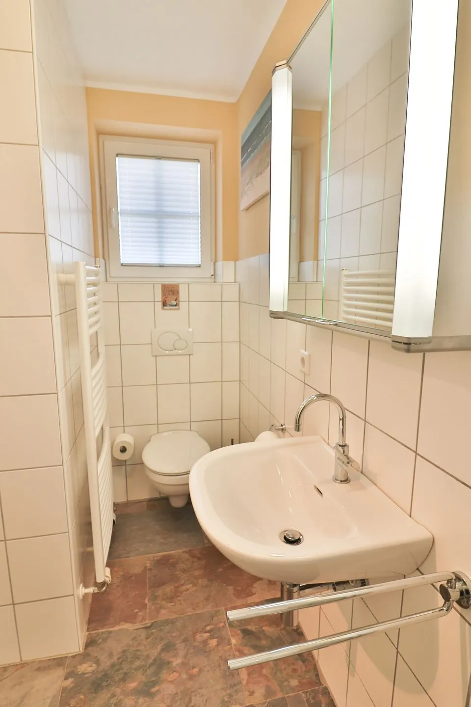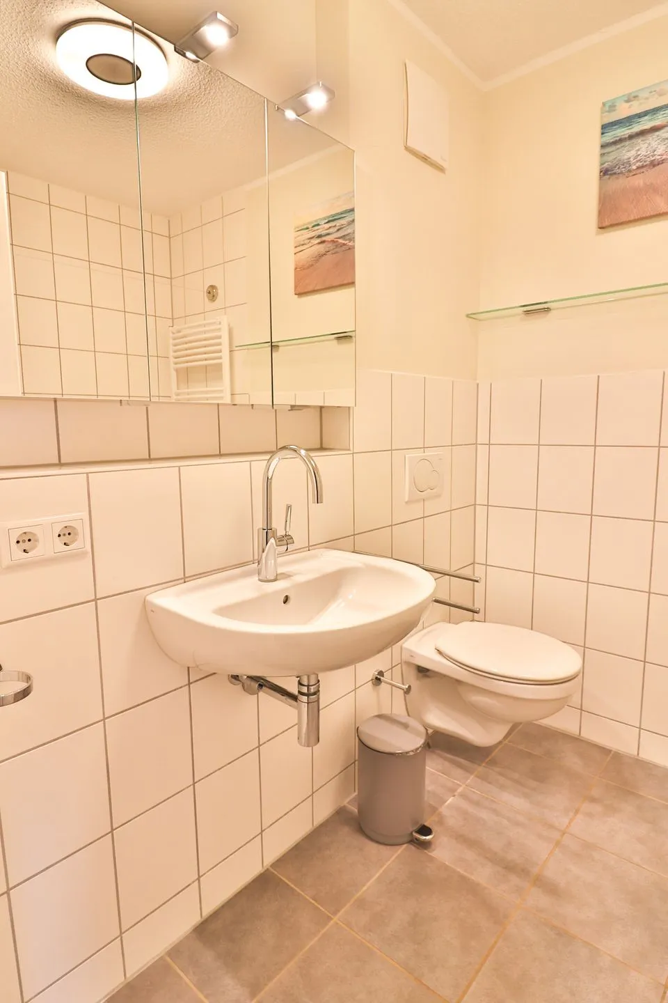 Für Ihre tägliche Routine stehen zwei Badezimmer zur Verfügung, eines davon mit Dusche im Erdgeschoss, das andere im Obergeschoss mit einer Dusch-Badewannenkombination für eine Portion extra Wellness. Zur weiteren Ausstattung gehören in beiden Badezimmern WC und Waschbecken, ein Haartrockner ist ebenfalls vorhanden. Pro Person sind ein Set Handtücher und Bettwäsche inklusive.