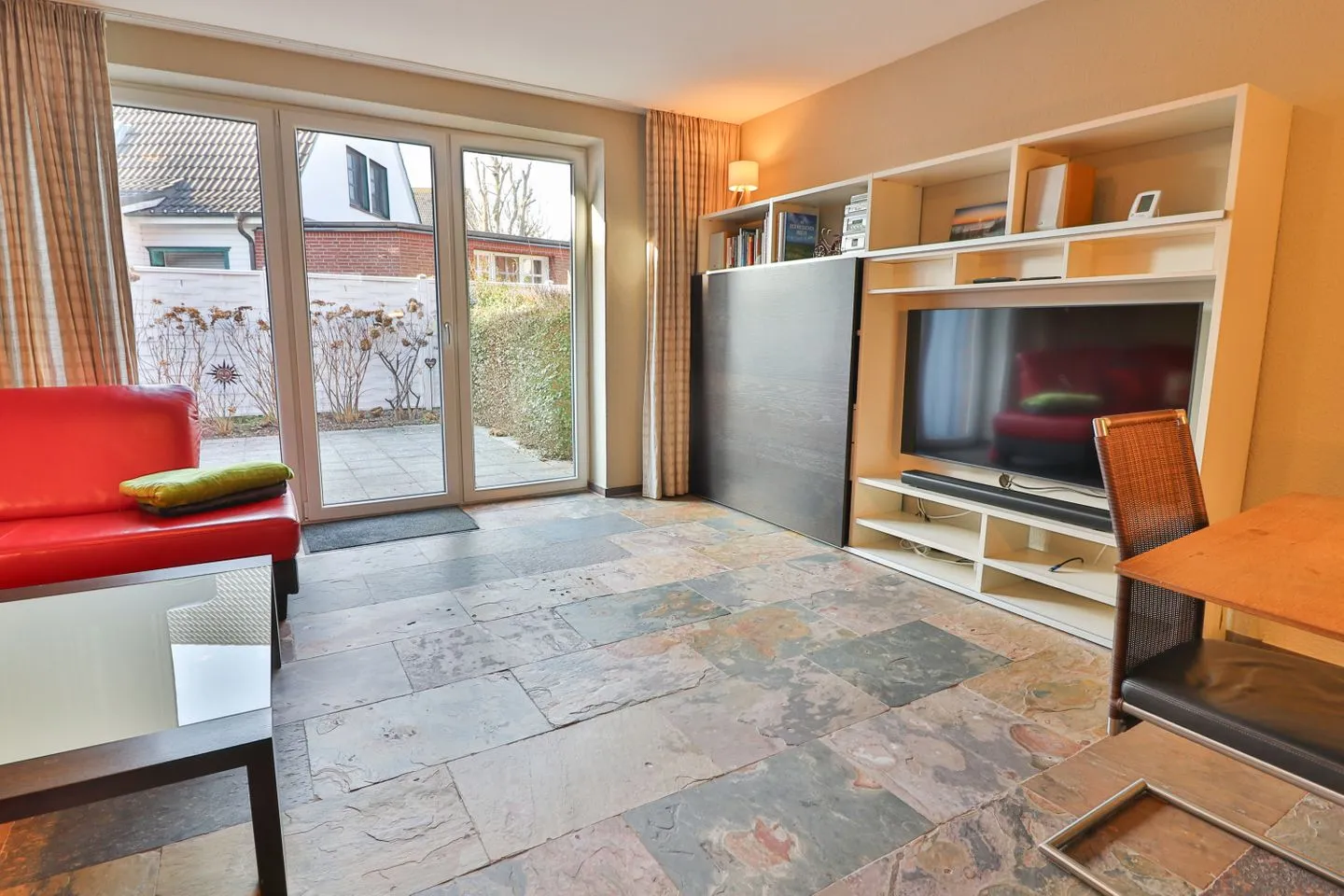 Das großzügige Wohnzimmer mit hochwertigem Steinfußboden bildet den Treffpunkt des Hauses, hier können Sie es sich auf dem bequemen Sofa oder Sessel abends vor dem großen Flachbildfernseher gemütlich machen oder den Inseltag bei einem guten Buch ausklingen lassen. Für entspannte Stunden stehen viele Bücher, Spiele, sowie eine Hifi-Anlage zur Auswahl. WLAN ist selbstverständlich kostenlos verfügbar, sodass Sie auch im Urlaub gut verbunden bleiben. Alle Fenster im Erdgeschoss verfügen über Plissees oder Gardinen, in den Schlafzimmern ist die Verdunkelung über elektrische Außenjalousien garantiert.